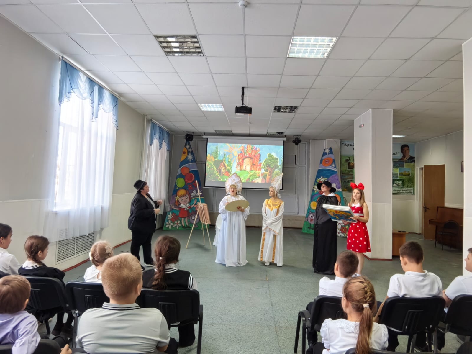 В районном дворце культуры прошла театрализованная программа «Царство вежливости» для ребят из Гимназии №1. Королева Этикета познакомила детей с понятием «вежливость», «доброта» и предложила детям отправиться в путешествие по волшебному царству, чтобы поближе познакомиться с вежливыми словами и на примере увидеть в чем они проявляются. Дети с восторгом окунулись в атмосферу приключений героев: принцессы Вежливости, Кота Базилио, доброй девочки Оли.